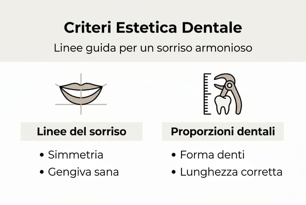Esistono criteri precisi che guidano ogni trattamento: la simmetria del sorriso, la linea gengivale, il rapporto tra lunghezza e larghezza dei denti, la tonalità dello smalto. Come chiarito da specialisti del settore, l'estetica dentale non è solo soggettiva ma segue regole precise. Questo significa che un buon dentista non si affida soltanto al tuo gusto personale, ma integra le tue preferenze con linee guida cliniche consolidate.