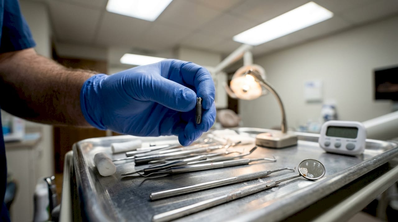 Implantologia dentale: un impianto moderno è una vite in titanio inserita nell'osso mascellare, che sostituisce la radice del dente mancante. Sopra si posiziona una corona in ceramica che imita perfettamente il dente naturale. Alcune cliniche usano sistemi guidati come X-Guide per una precisione millimetrica durante l'inserimento. Il risultato è stabile, estetico e funzionale per decenni. Puoi leggere un approfondimento su implantologia dentale per capire meglio il processo.