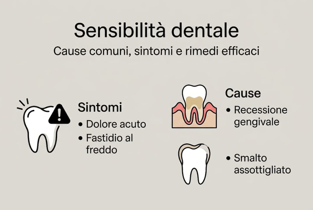 La sensibilità dentale (o ipersensibilità dentinale) è una risposta dolorosa acuta e transitoria a stimoli come il freddo, il caldo, il dolce, l'acido o persino il contatto fisico. Non è una malattia in sé, ma un sintomo che segnala qualcosa di alterato nella struttura del dente. La dentina, lo strato sotto lo smalto, contiene microscopici tubuli collegati al nervo. Quando questi tubuli restano esposti, ogni stimolo diventa un piccolo shock elettrico.